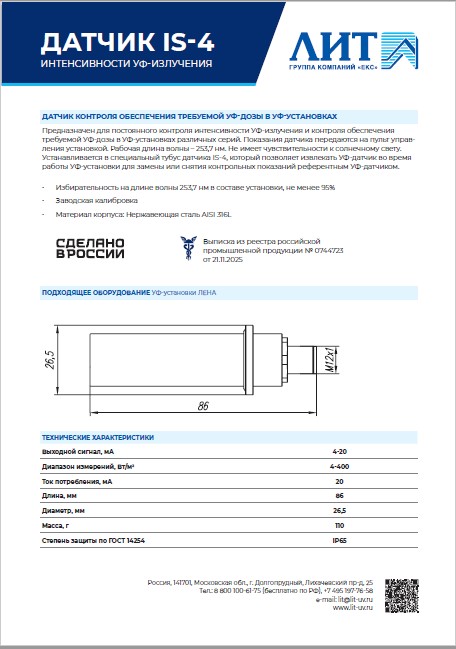 Датчик интенсивности УФ-излучения IS-4